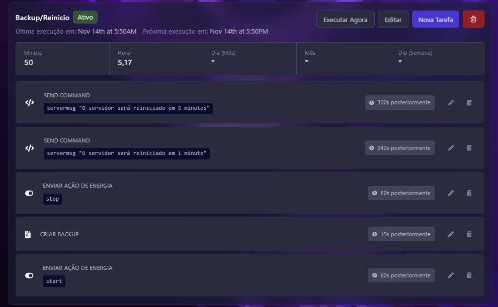 Configure backups que são criados automaticamente. Armazenamos cópias locais e na nuvem Cloudflare R2 para garantir a segurança dos seus dados.